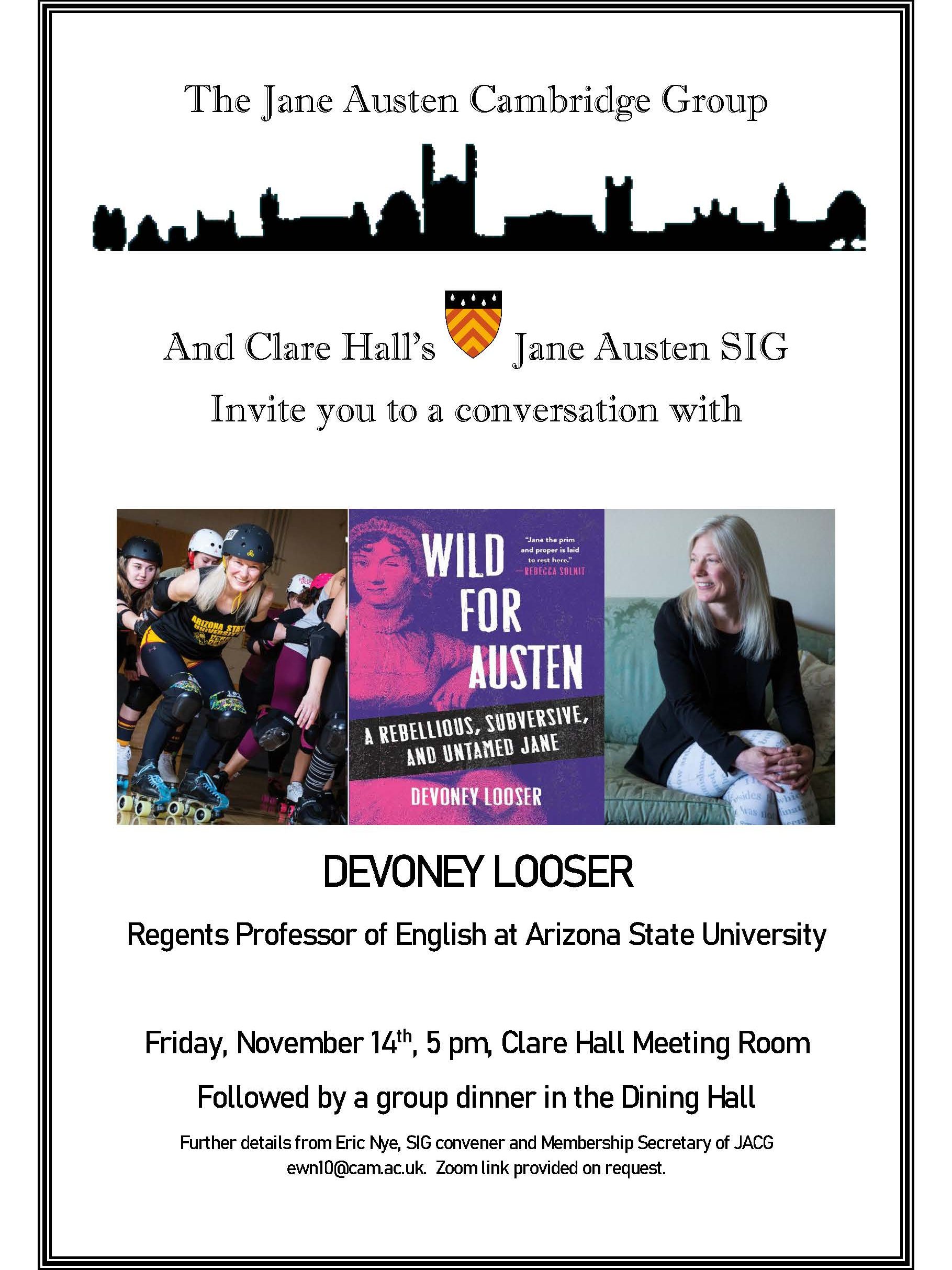 All Clare Hall members are welcome to attend the meetings for the English Literature (Jane Austen) SIG this Michaelmas term. The next meeting is taking place on Friday 14 November at 5pm in the Clare Hall Meeting Room, followed by a group dinner in the Dining Hall.