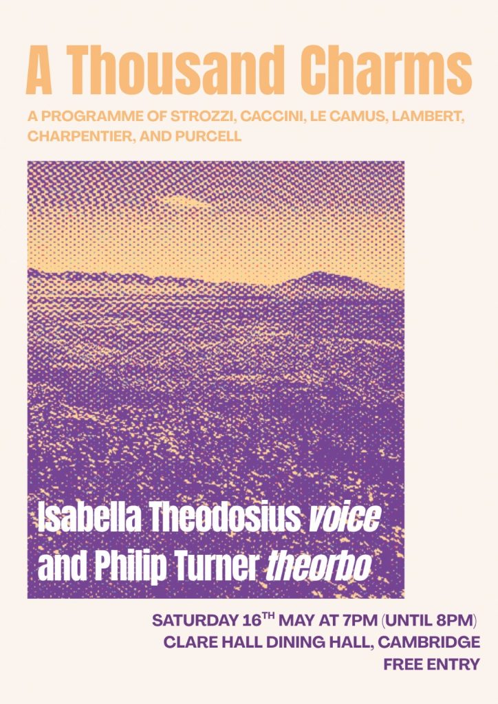 We are delighted to host a music concert featuring talented students Isabella Theodosius (voice) and Philip Turner (theorbo) on Saturday 16 May at 7.00pm. The recital will be accompanied by animation designed by Ruby Finlyason (MPhil in Digital Humanities; GSB Communications Officer).