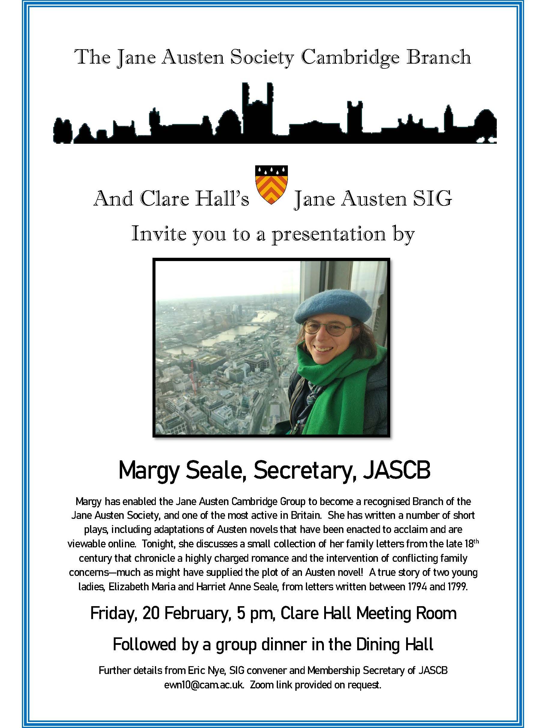 - Friday 20 February: Margy Seale, Secretary, JASCB