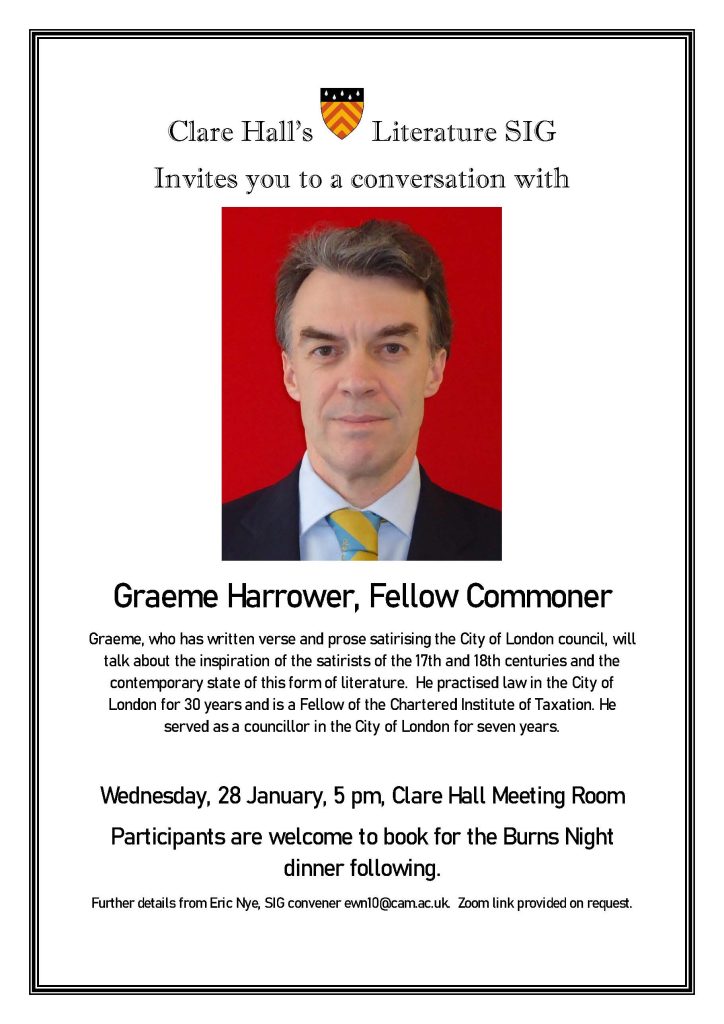 - Wednesday 28 January: Graeme Harrower on Satire