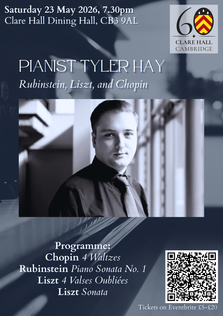 Tickets are available on Eventbrite: £20 – General Admission, £15 – Clare Hall members, £5 – students.