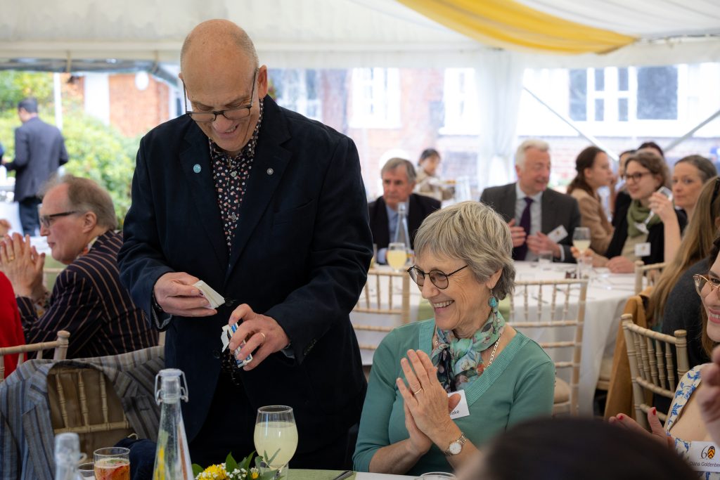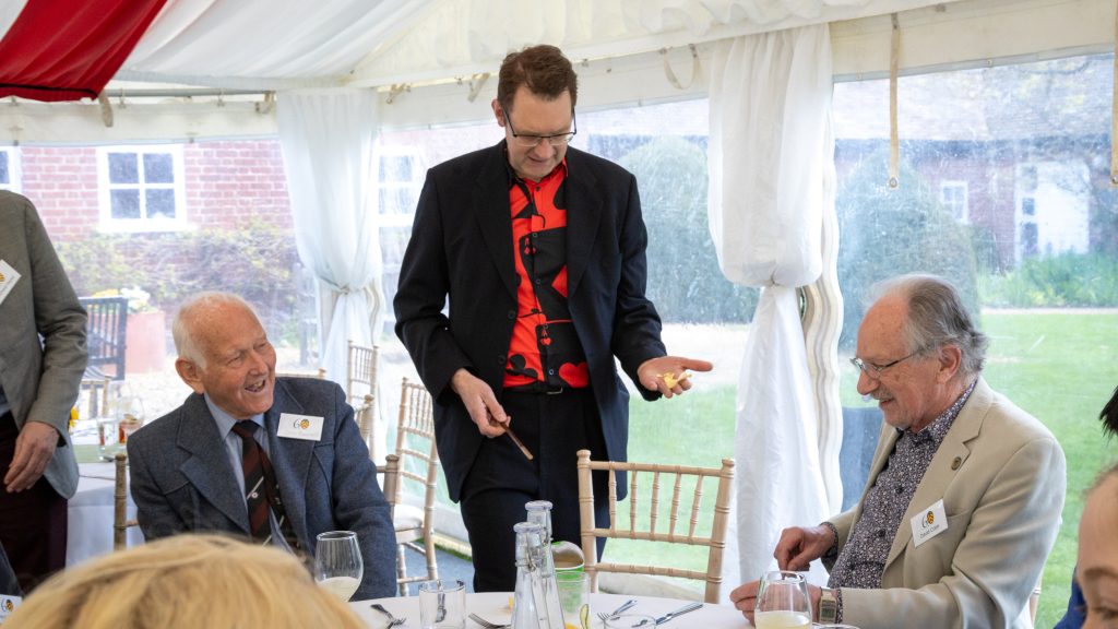 Guests enjoyed a relaxed setting filled with lively exchanges, delicious food, and a warm sense of occasion. A special highlight of this year’s gathering was the presence of the Cambridge Pentacle Club, a long-standing society of magicians founded in 1919 by Walter William Rouse Ball. Their return to Clare Hall, to a site connected with Rouse Ball’s former family home, now the Elmside building and Ashby Library, added a unique and playful dimension to the afternoon, delighting guests with moments of surprise and wonder.