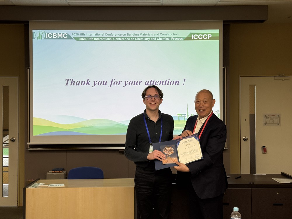 Callum White, who recently completed his PhD at Clare Hall and the Department of Engineering at the University of Cambridge, has been awarded the Best Oral Presentation Award at the 11th International Conference on Building Materials and Construction (ICBMC), held in Tokyo, Japan.