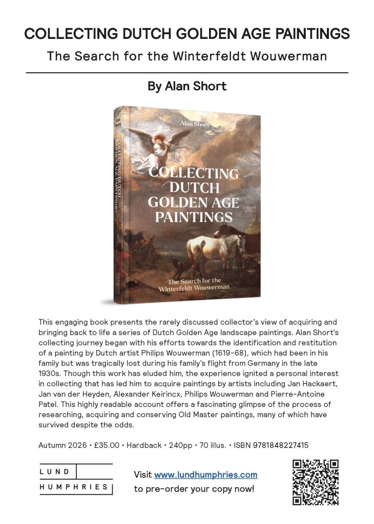 Collecting Dutch Golden Age Paintings: The Search for the Winterfeldt Wouwerman by Professor Alan Short, President of Clare Hall, offers a personal and scholarly reflection on the pursuit of Dutch Golden Age paintings, drawing on decades of research and collecting experience. Works from this collection are displayed in the President’s Lodge.